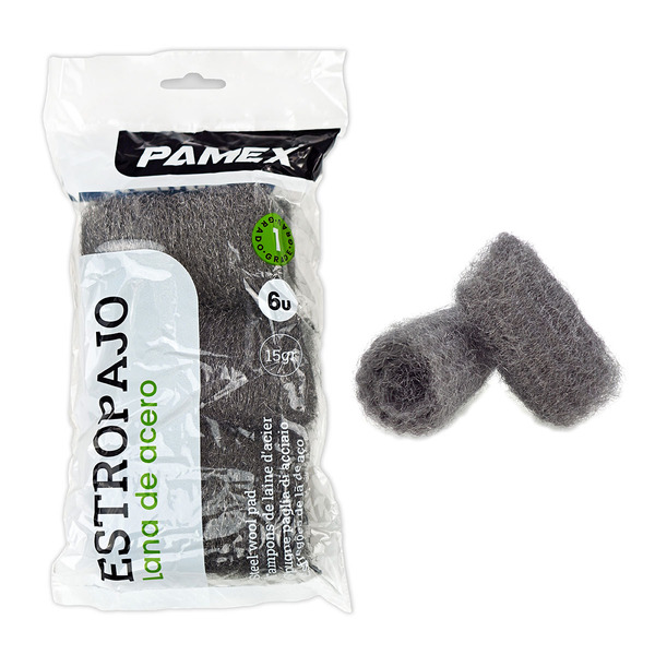 Estropajo lana de acero. Uso profesional e industrial. 15gramos cada pieza. Set de 6 unidades.